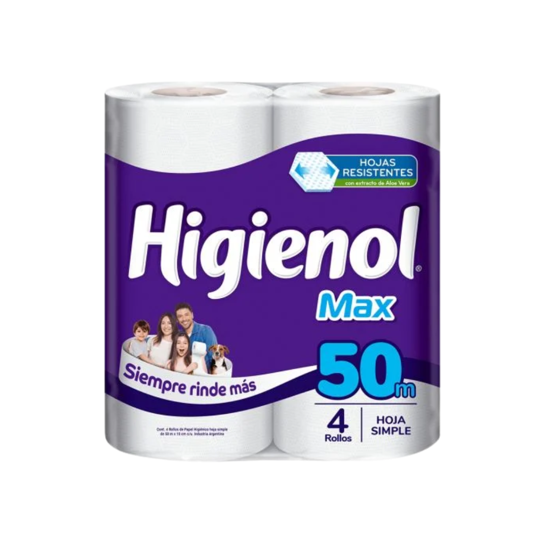 PAPEL HIGIENICO HIGIENOL MAX HOJA SIMPLE 4 X 50 MTS