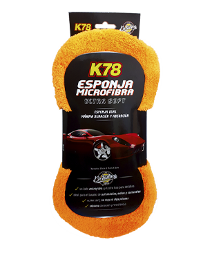 Esponja dual y ergonómica de máxima duración y absorción. Un lado Microfibra y el otro liso para detalles. Ultra Soft, no raya ni deja peluza.
